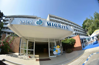 Hotelul Miorita, pe care abia astept sa il vad, este la 700 m de plaja si la 150 m de centrul statiunii. Intr-o zona cu vegetatie bogata, ceea ce ma incanta maxim. Caci el nu rezista mult timp pe plaja unde eu m-as muta maine!!